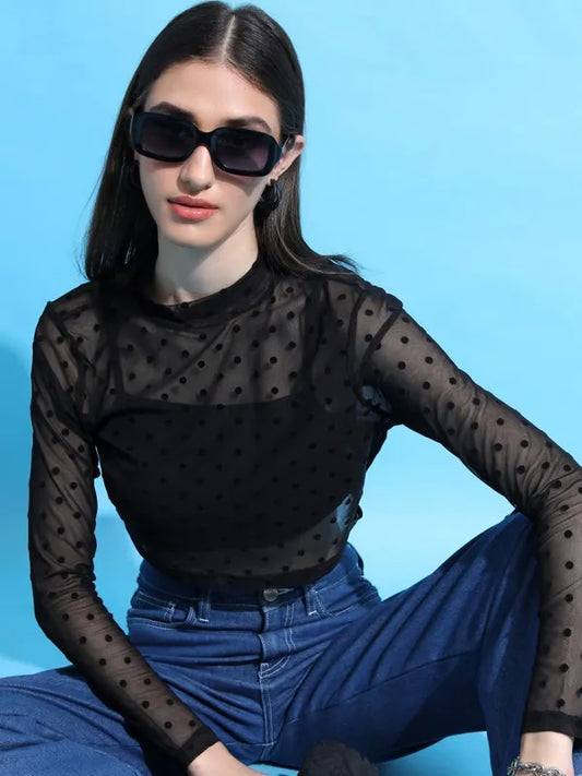 Suburbans Women Black Angel & Stitch Embroidered Fitted Top