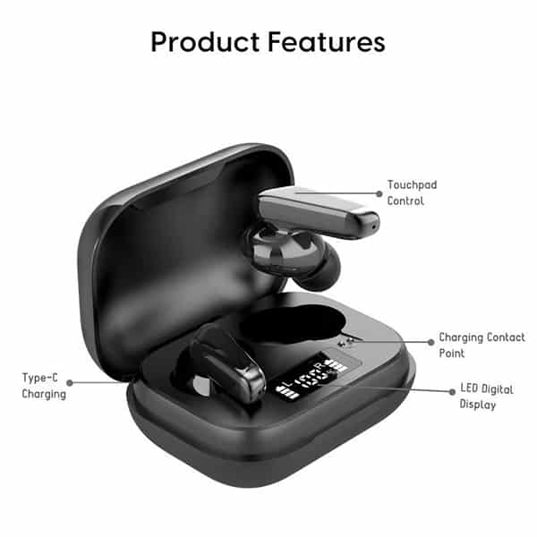 - Digital Indicator for Battery Levels –The charging case comes with LED Digital Display which shows the exact numeric battery level of both the case and the earphones.