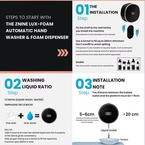 - [Automatic Induction Technology]: Znine LuxFoam features cutting-edge automatic induction, ensuring a touch-free and hygienic handwashing experience.