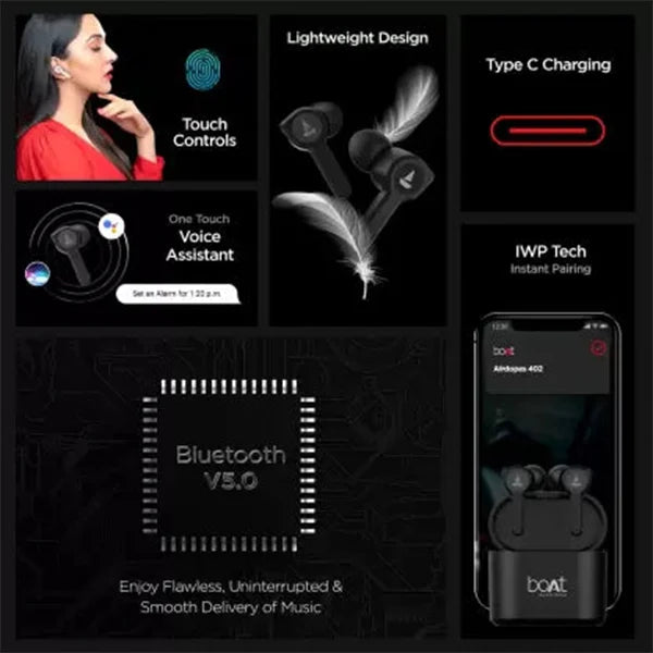 - Easy Access Touch Controls Airdopes 402 offers a seamless user experience with its easy access advanced touch controls and built-in mic