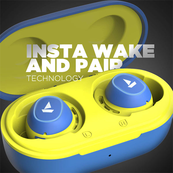 - It is equipped with IWP (Insta Wake N’ Pair) Technology that powers on the earbuds and puts them into connection mode as soon as one opens the lid of the carry case