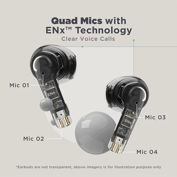 - Clear Voice Calls- Be heard clear across voice calls without those usual interruptions, with the Quad Mics ENx Tech enabled Airdopes Atom 81, that cancels out unwanted background noises during calls.