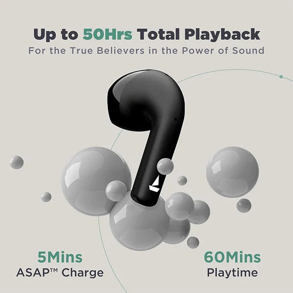 - Playback- Airdopes Atom 81 offer a total playtime of up to 50HRS, including up to 10HRS of playtime per earbud.