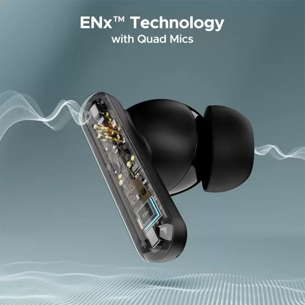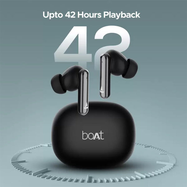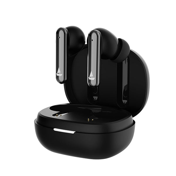 Disconnect from the noise and experience next-level audio with the boAt Air dopes Bliss ANC TWS Earbuds. By eliminating up to 32 dB of sounds in your background, these earbuds are the go-to choice for enjoying your personal audio zone publicly. Not just grooving to music but even calling is supremely clear with quad mics featuring ENx technology that cancels surrounding noise. Make and attend calls from any location including cafes, malls, railway stations, and more with high sound clarity. Additionally, up to 42 hours of playback time ensures non-stop entertainment so that you can listen to podcasts and stream OTT content for the ultimate relaxation. Rack up gaming milestones with BEASTTM mode which removes lag with up to 60 ms low latency. Moreover, the dual EQ modes of these earbuds give you the added convenience of fine-tuning the sound for blissful listening. Stream and escape from reality with the punchy bass of boAt Signature Sound or the mellow pace of Balanced Mode. Furthermore, courtesy of the ASAP Charge function, juicing up for merely 10 minutes will let your earbuds perform for around 180 minutes when they are low on charge. Carry your favorite tunes even when you’re on the move as these earbuds sport IPX5 splash and sweat resistance for worry-free use. Upgrade your listening experience with Air dopes Bliss ANC!