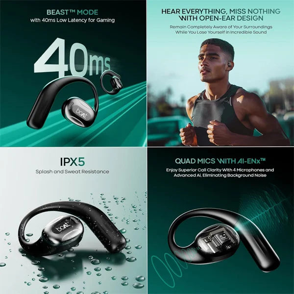 - Air Conduction Technology: Embrace enhanced listening comfort with the boAt Air dopes ProGear OWS Earbuds. Boasting Air Conduction technology for audio transmission, these earbuds ensure minimal audio leakage while their open-ear design lets you enjoy music without blocking the ears.