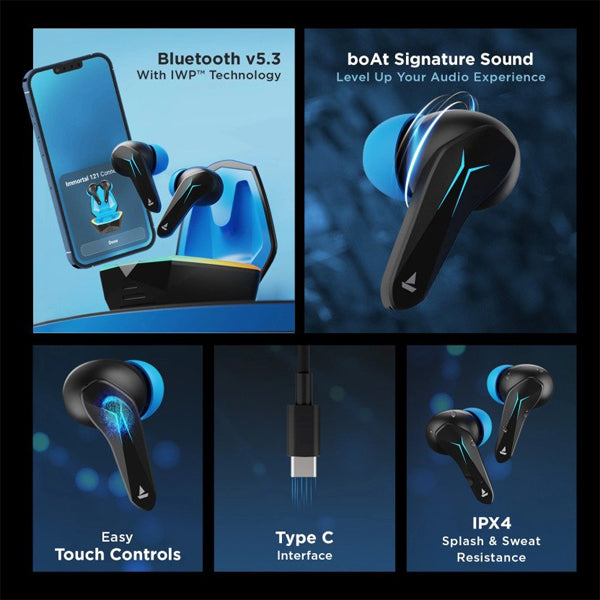 - IPX4 Water Resistance The boAt Immortal 128 Gaming Earbuds are designed with an IPX4 rating, making them resistant to sweat and splashes. This makes them ideal not only for gaming but also for outdoor activities, workouts, or when you’re on the move. Whether you’re gaming during intense workout sessions or caught in light rain, these earbuds are built to withstand various environmental conditions.