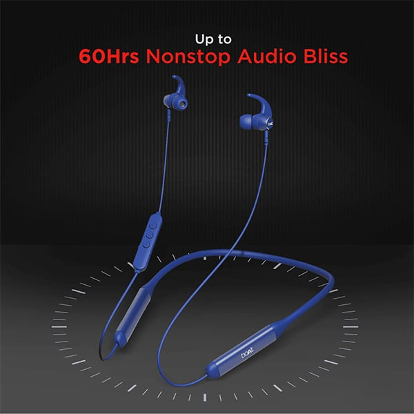 - The ergonomically designed neckband has magnetic earbuds that support easy storage and carry when not in use
