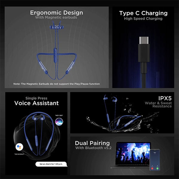 - You can enjoy the advantage of dual pairing by having the neckband stay connected to two devices simultaneously, for eg: phone and laptop.
