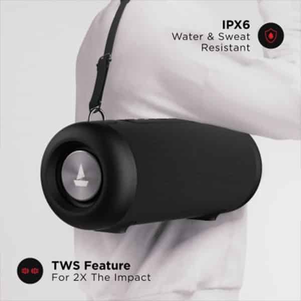 - Water and Dust Resistance: With an IPX6 rating, the boAt Stone 1350 is water-resistant, meaning it can withstand splashes of water, rain, and even a brief immersion in water. It is also resistant to dust, making it suitable for beach trips, outdoor adventures, or even a party by the pool.