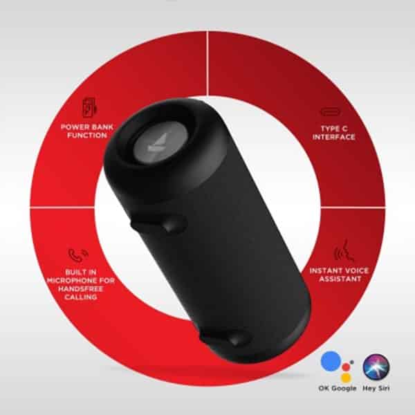 - Rugged & Compact: The boAt Stone 1350 is built with a rugged design, featuring a robust body that ensures it can handle rough environments. It’s designed for people who love taking their music on the go. Its compact design makes it portable, and the speaker can easily be carried around.