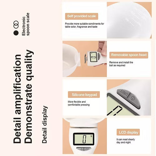 Convenient and compact design: The handheld electronic spoon scale is designed to be compact and portable, making it easy to carry and use while on the go. It eliminates the need for separate weighing scales and spoons, saving space in your kitchen.