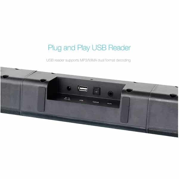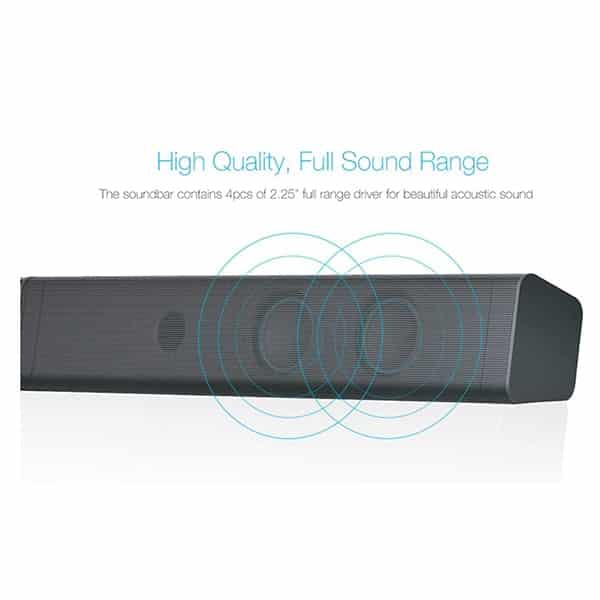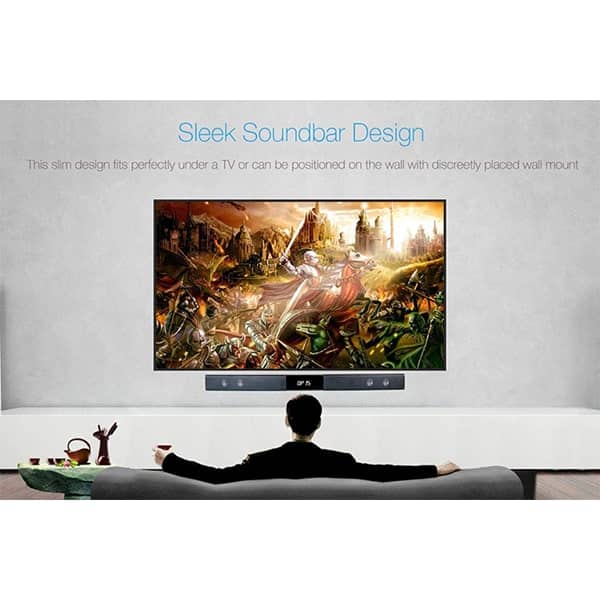 Incomparably designed and extremely easy to use, discover a new level of immersive, cinematic audio experience at home with the F&D T160X 2.0 TV Sound bar. With a powerful 40 W output power, a slim sound bar of 2.25 inch x 4 high quality speaker and versatile 2-way subwoofer brings every aspect of your entertainment be it a song, show or movie to life in the volume and clarity it deserves. Drivers at each end of your sound bar deliver a clear mid and high range and fills in the rumbling lows. The 2.0 channel sound system provides a balanced sound and deep bass for your movies, music and even video games and you can experience the cinematic sound that revolves around you. The F&D TV Sound Bar T160X 2.0 includes Bluetooth connectivity, optical, Coaxial, USB or auxiliary cable so that you can stream your favorite music to the speaker, wirelessly stay plugged into the sound with an array of wired connections and Bluetooth version 4.0 wireless technology. Bring your home to life with the T160X Sound bar.