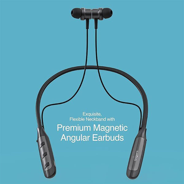 - Exquisite, Flexible Neckband with Premium Magnetic Angular Earbuds: The neckband boasts a slim and flexible design in a Classic Black shade with a touch of Dark Silver, offering a stunning and powerful look. The angularly shaped earbuds provide a secure fit and easily clip back together magnetically when not in use. Two sizes of ear gels are included for a customized, cozy fit.