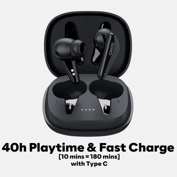 - With an earbud battery life that lasts up to 7 hours, a carry case with an extra 33h of charge and a fast charge capability of 10 mins charge for 180 mins playtime, you can enjoy your music without worrying about power with GOVO GOBUDS 600 Earbuds. Additionaly comes with LED battery indicatory to know your charge. Charging Time :1.5 Hours. Standby Time 150 Hours.