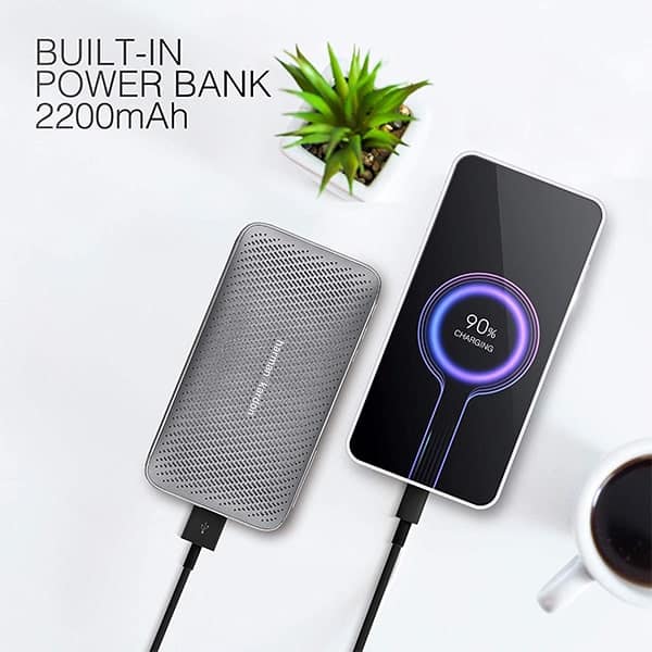 The Harman Kardon Esquire Mini 2 comes with built-in 2200 mAh power bank to quickly charge your devices, so you will never run out of power again.