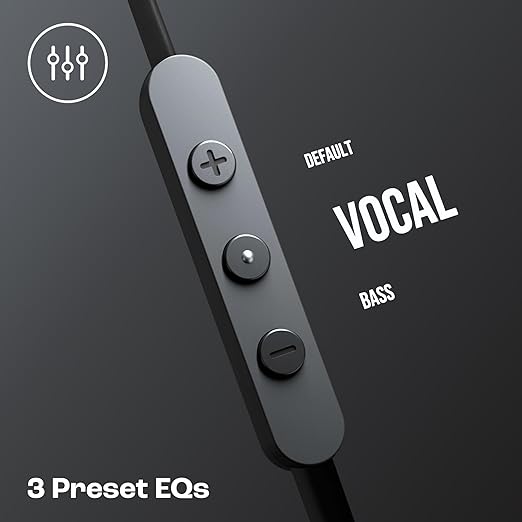- EQ presets control Select Default, Bass, or Vocal to find the sound that fits your taste via the 3-button remote on the wire