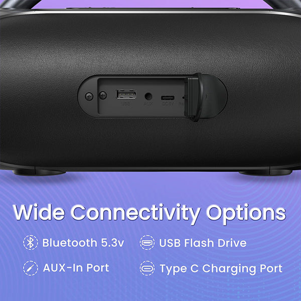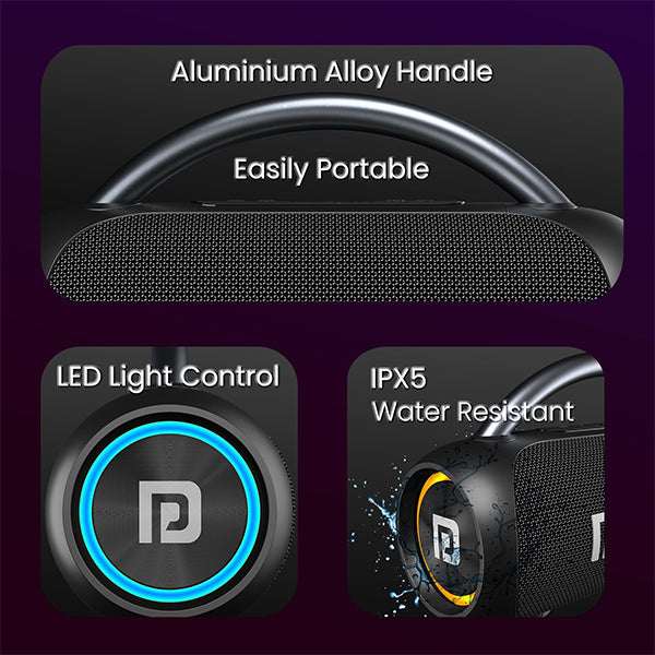 - Compact & Portable Design: Lightweight and ergonomically designed, with a handle for easy transport, making it the perfect speaker for travel, parties, and outdoor events.