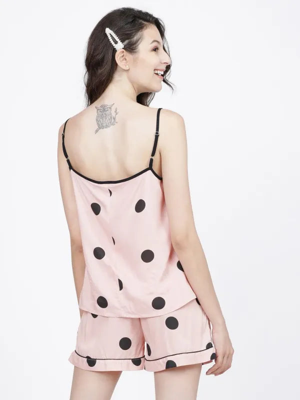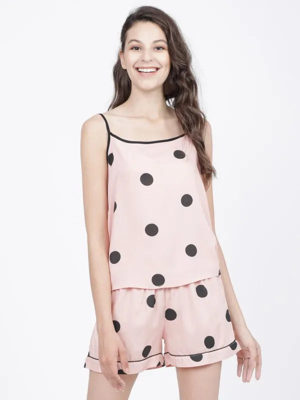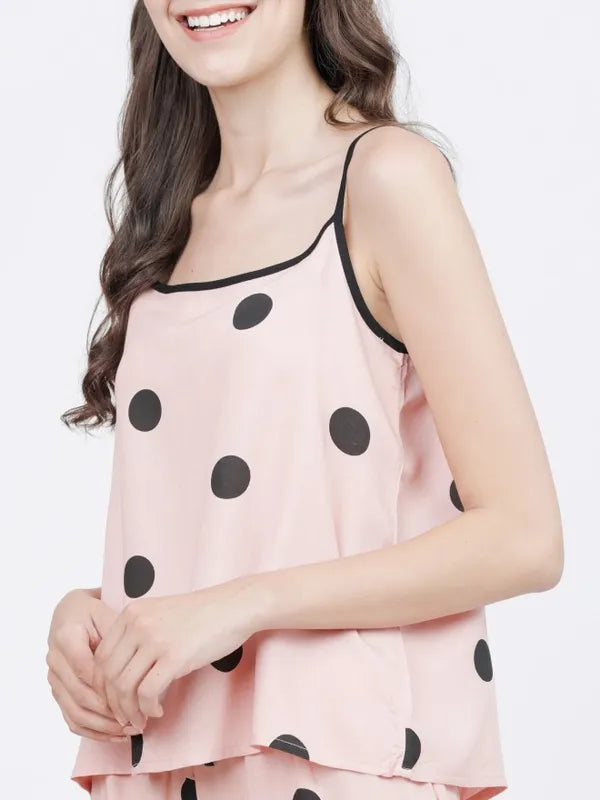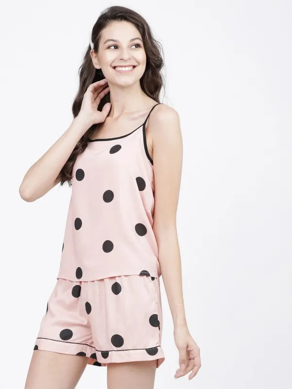 - product description This stylish night suit features a regular fit design with a playful Polka Dots pattern. The Sleeveless top comes with comfortable Shoulder Straps, while the Shorts bottoms provide a relaxed and cozy fit. Perfect for a good night's sleep or lounging around the house in style.