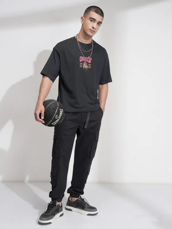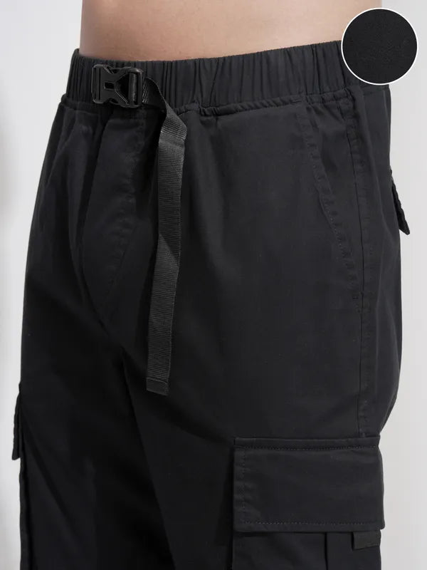 - product description Step into effortless style with Highlander's Men Relaxed Fit Cargos. The black cargos gives a fresh look to your everyday outfits.