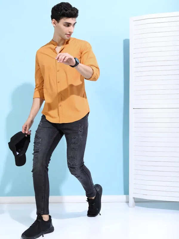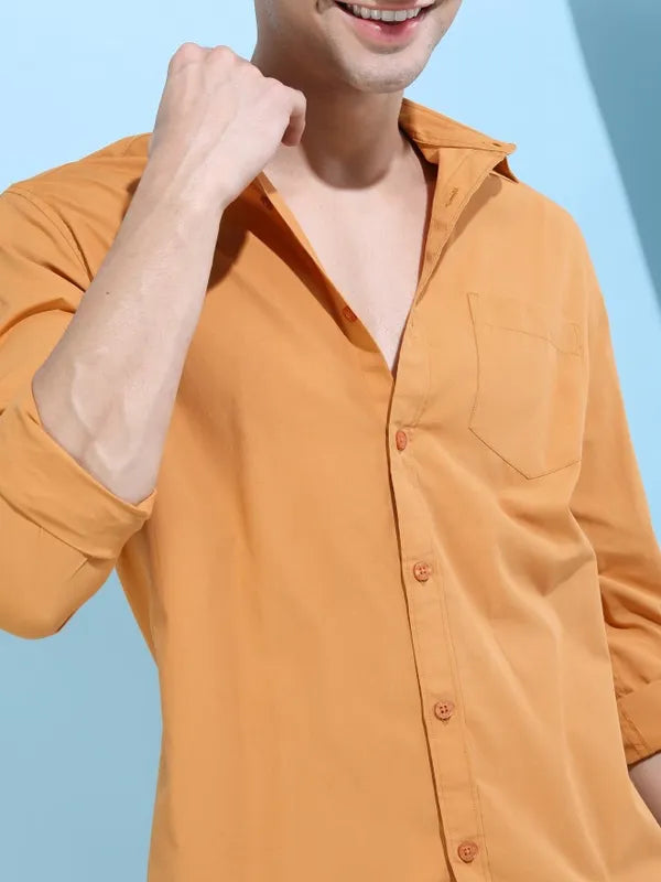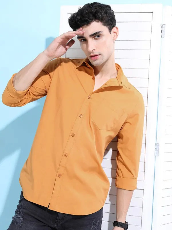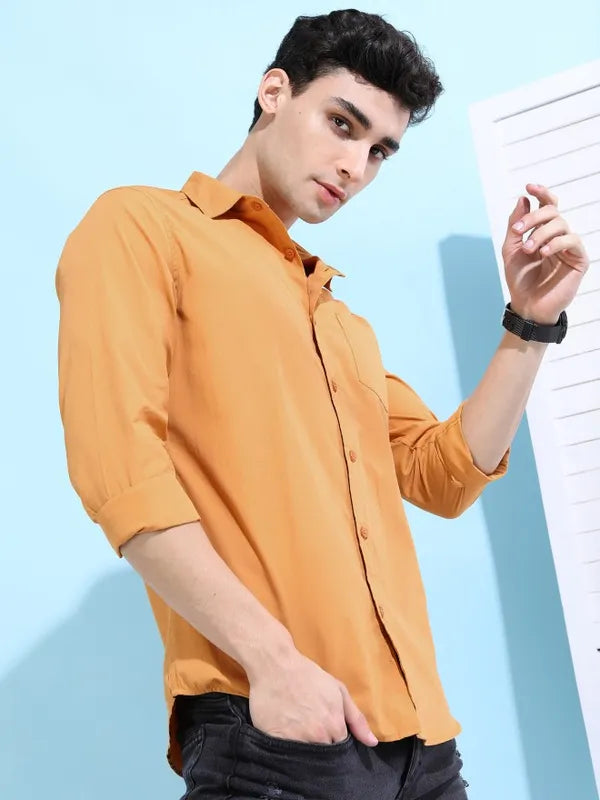 - product descriptionCool and casual make the perfect combination in this yellow shirt from Ketch. This suave shirt for men comes with a cutaway collar, long sleeves, and a solid look. Constructed in polyester, this shirt will keep you looking dapper as well as ensure your comfort all day long.