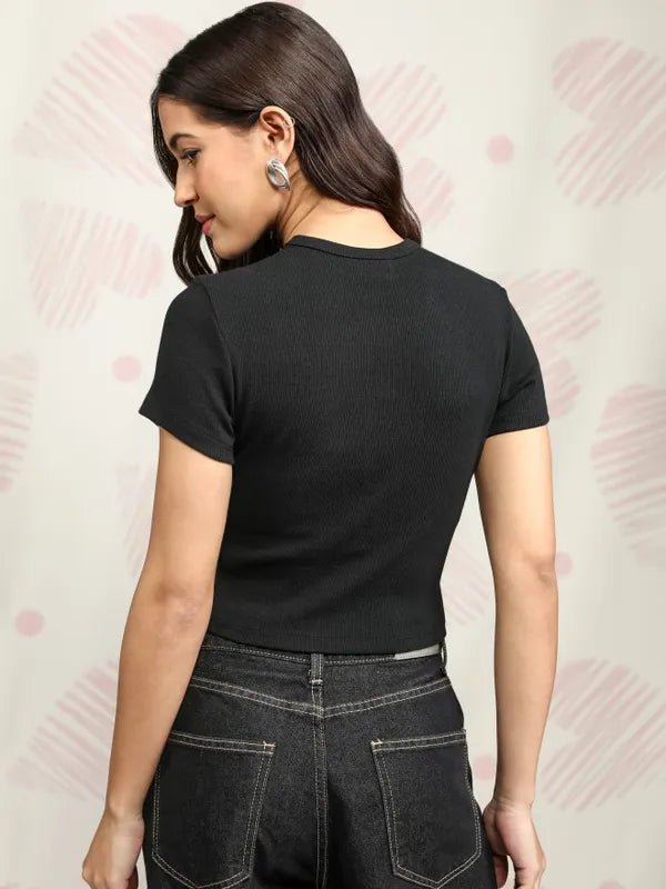 - product description Embrace Suburbans vibes with this stylish black t-shirt featuring a bold graphic pattern. Crafted for a comfortable regular fit, this short-sleeved round neck tee is perfect for everyday wear.