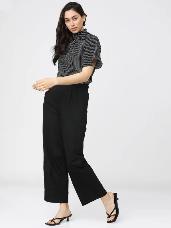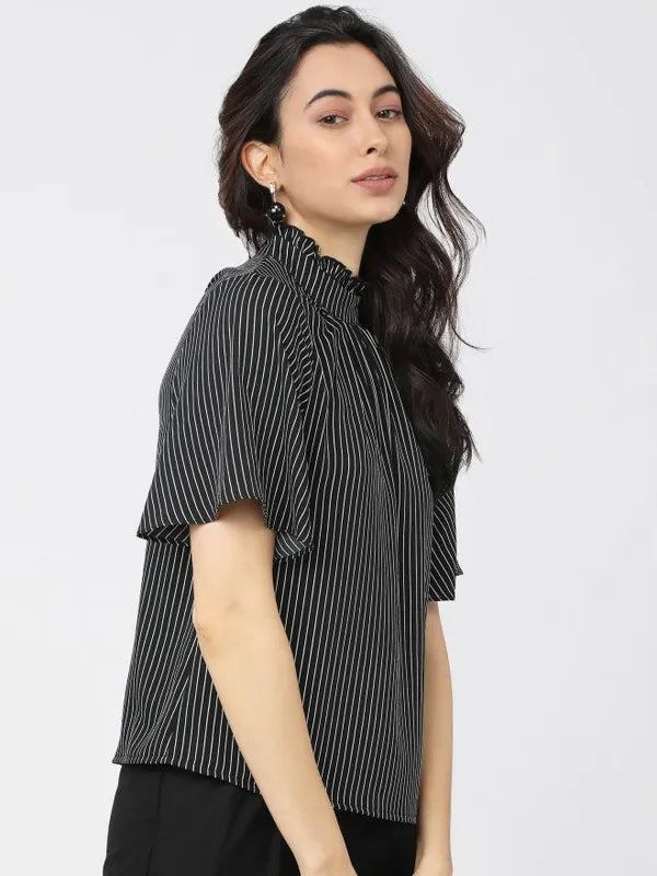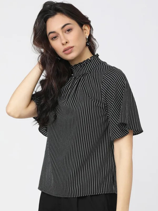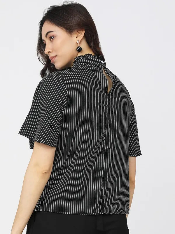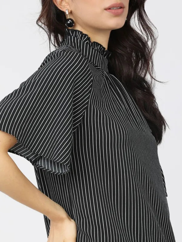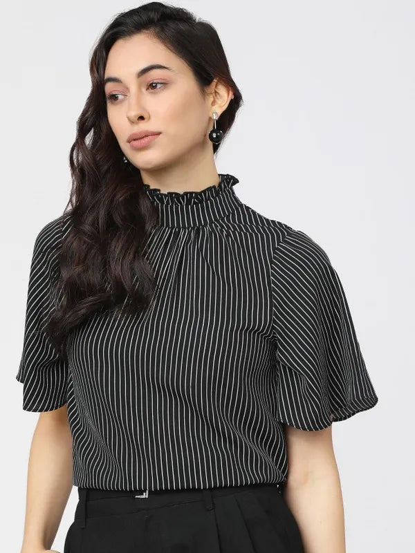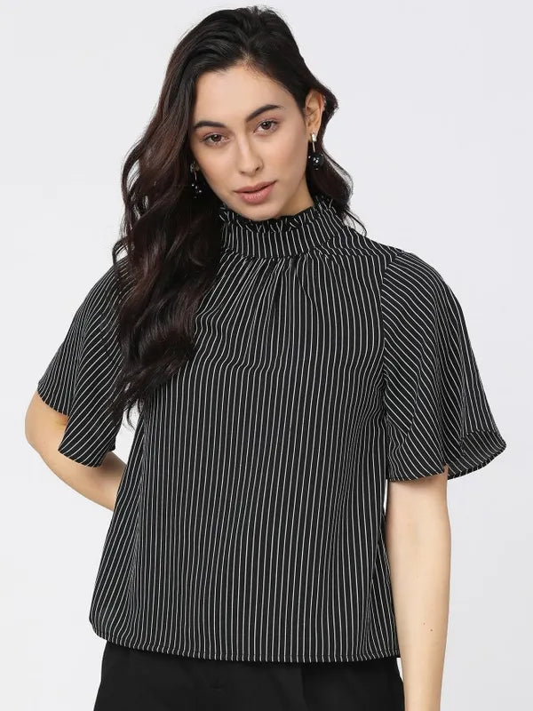 - product description Reflect your gorgeous self with this black-white top from Suburbans. Featuring striped patterns - it has short sleeves and a high neck. These t-shirts for women come in a regular length and are crafted from a premium quality fabric.