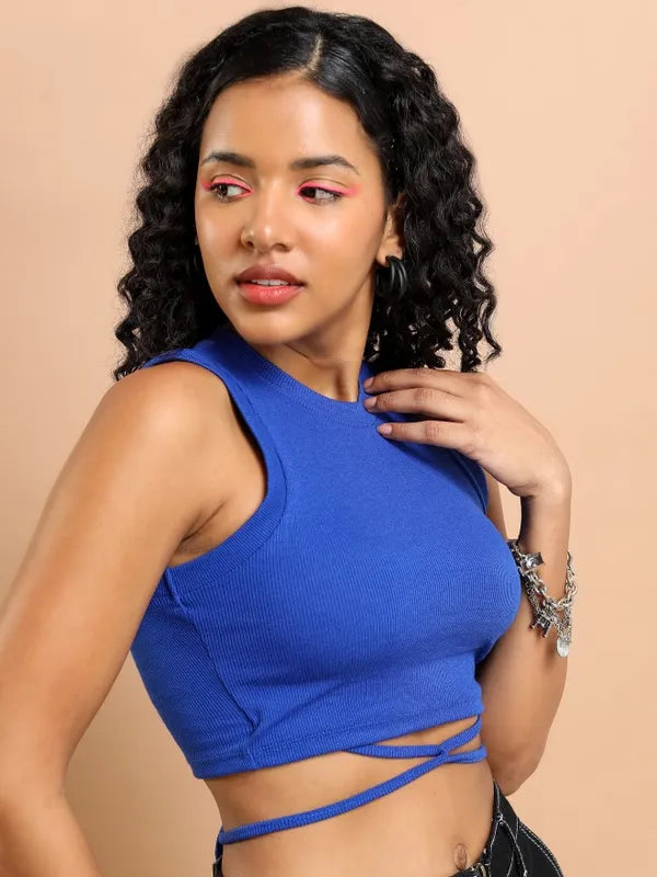 - product description Enhance your clothing collection with this stylish blue sleeveless top. Made from sleek polyester, it boasts a timeless round neckline and a simple solid design. Ideal for any event, this regular-fit top merges comfort with easy elegance.