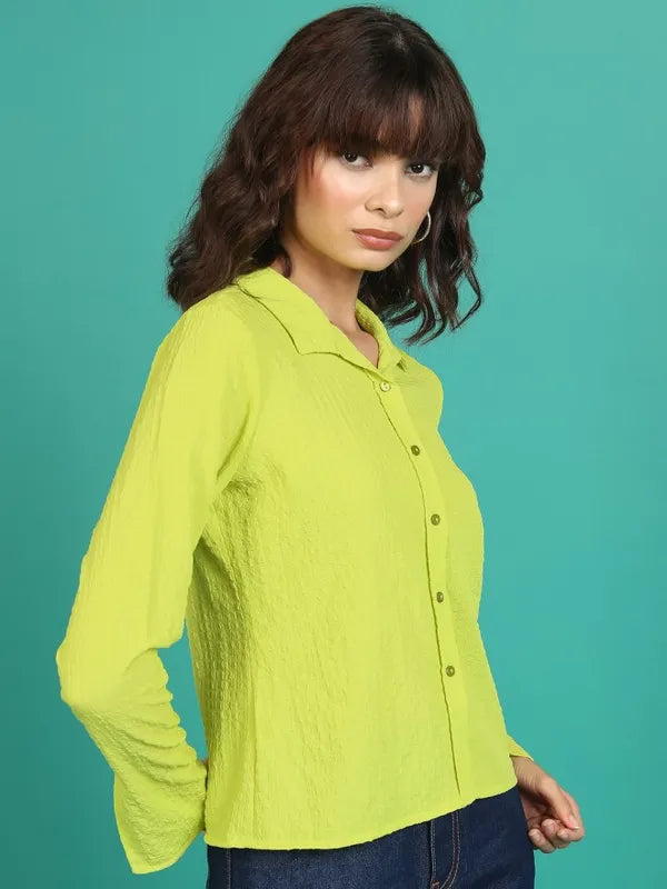 - product description Effortlessly chic, this long-sleeved, cutaway collar shirt is your new go-to for casual elegance. Crafted from smooth polyester, it drapes beautifully with a flattering regular fit. The solid pattern allows for endless styling possibilities, from jeans and sneakers to skirts and heels.