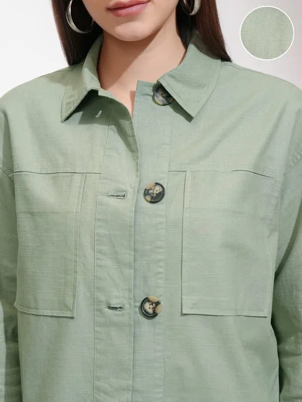 - product description Step into effortless style with Suburbans's Women Solid Oversized Fit Casual Shirt. The olive casual shirts gives a fresh look to your everyday outfits.