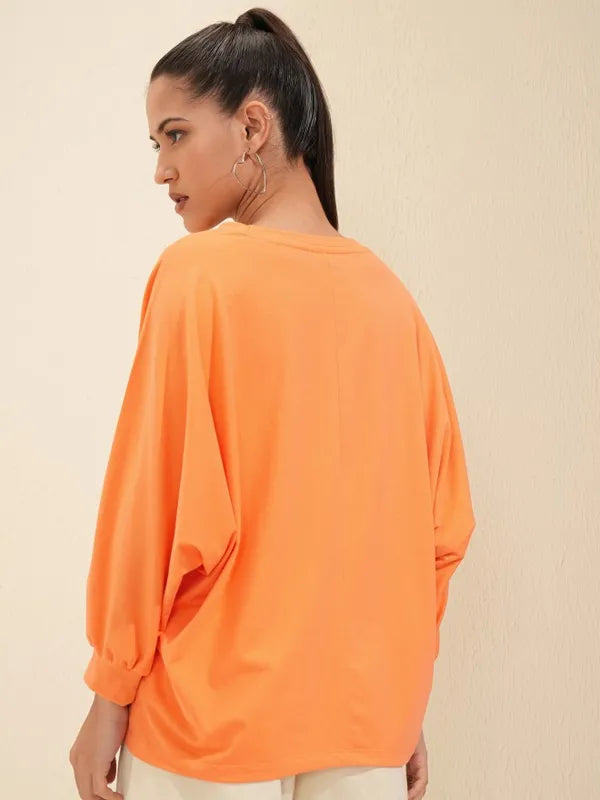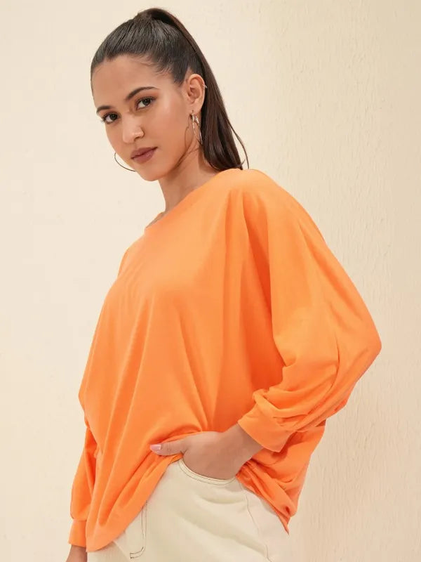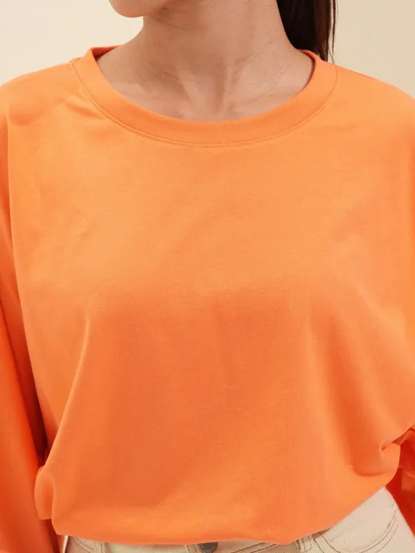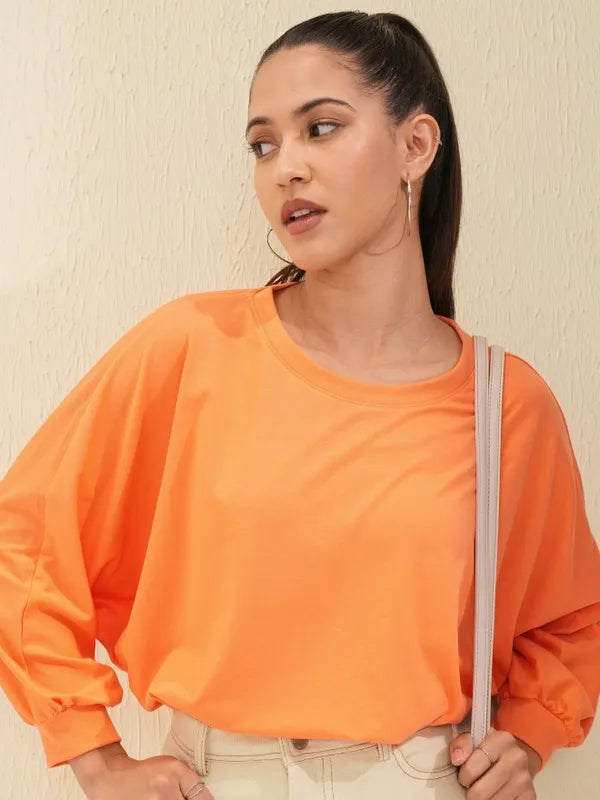 - product description Embrace effortless chic in this oversized, long-sleeved tee. Crafted from soft, breathable cotton, it drapes beautifully for a relaxed yet polished look. The round neckline and solid pattern offer versatility, making it perfect for layering or wearing solo.