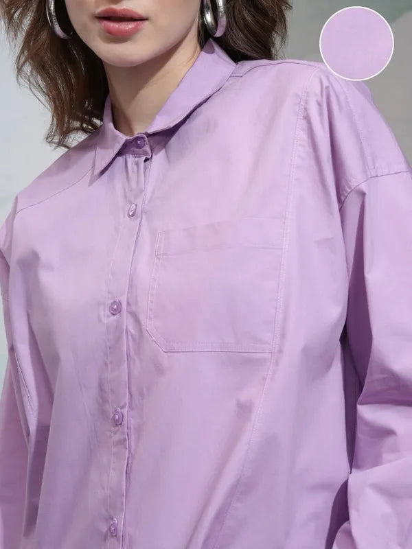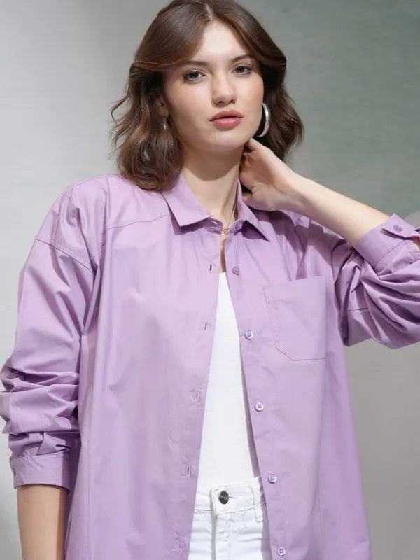 - product description Step into effortless style with Suburbans's Women Solid Regular Fit Casual Shirt. The purple casual shirts gives a fresh look to your everyday outfits.