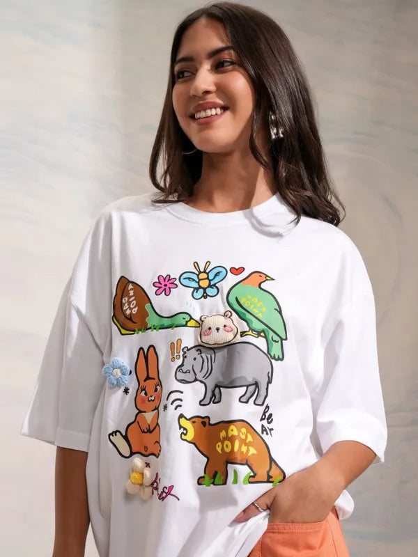 - product description Suburbans 's Printed Oversized Fit T-Shirt blends classic design with a contemporary white color. A easy to wear t-shirts that's great for smart or casual plans.
